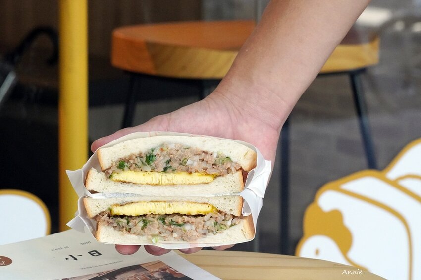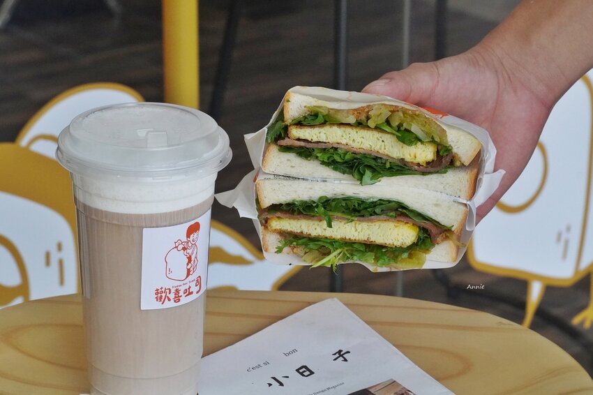 如果有人不愛吃吐司邊,跟帥哥老闆說一下,老闆都可以客製化去吐司邊喔,而且[歡喜吐司]的吐司是跟知名三明治[洪瑞珍]使用的吐司同一間廠牌,品質上很不賴,吐司偏向柔軟口感,這點深受我喜歡。