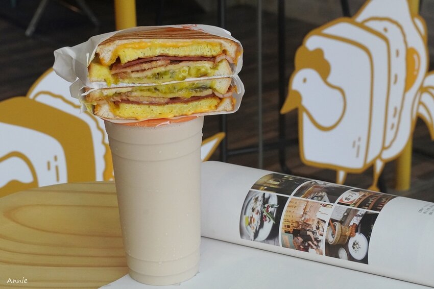 不同於一般早餐店的品項,『歡喜吐司』的三明治內餡配料都別具特色,有美式的古巴三明治、大家熟悉的肉蛋吐司、加入日式風味的蔥蔥鮪魚、還有塞滿一整隻大雞腿的一支炸雞腿蛋吐司。吐司口味超別致外,就連厚片土司也好吃到讓我立刻想要回購一份,塗滿花生醬外還灑上滿滿花生粉,加入炸湯圓,好吃到讓人想要落淚啦!