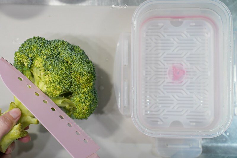 我拿青花菜做實驗,新鮮剛買回來的青花菜,經過水洗後一朵朵的陳列在保鮮盒中