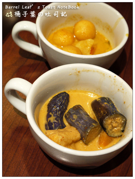 不過這黃咖哩底醬非常好吃~有讓我有想配飯喀的衝動,不過因為怕會太佔位放棄。