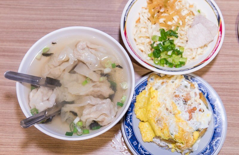 還住基隆時,我的早餐通常是一碗乾麵一碗餛飩,蔥油餅兩個一個加蛋一個不加。