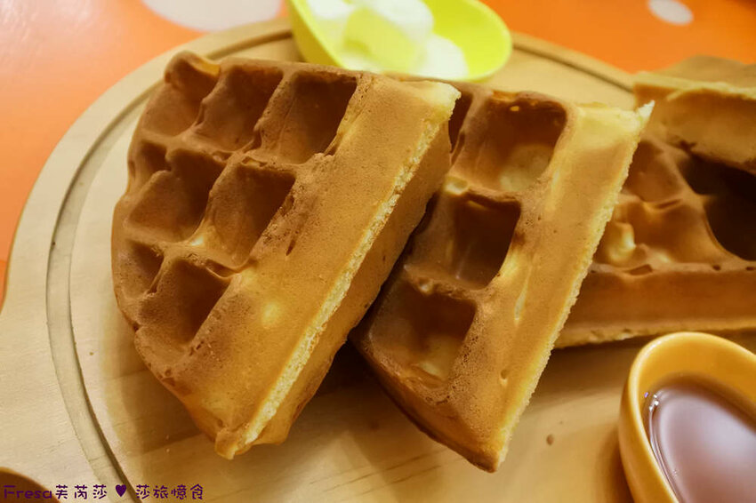 一份二塊現烤鬆餅,很適合帶著到茂林生態園區看紫斑蝶享用!
