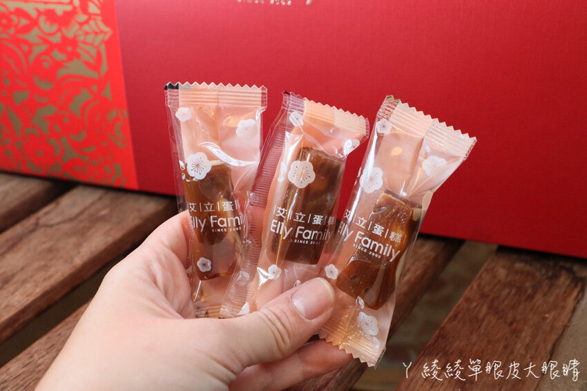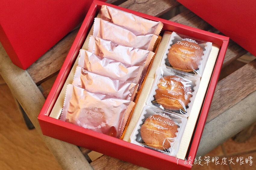 艾立蛋糕的年節伴手禮盒沒有浮誇的包裝,傳統喜氣的紅色配上金色字樣也很有質感!