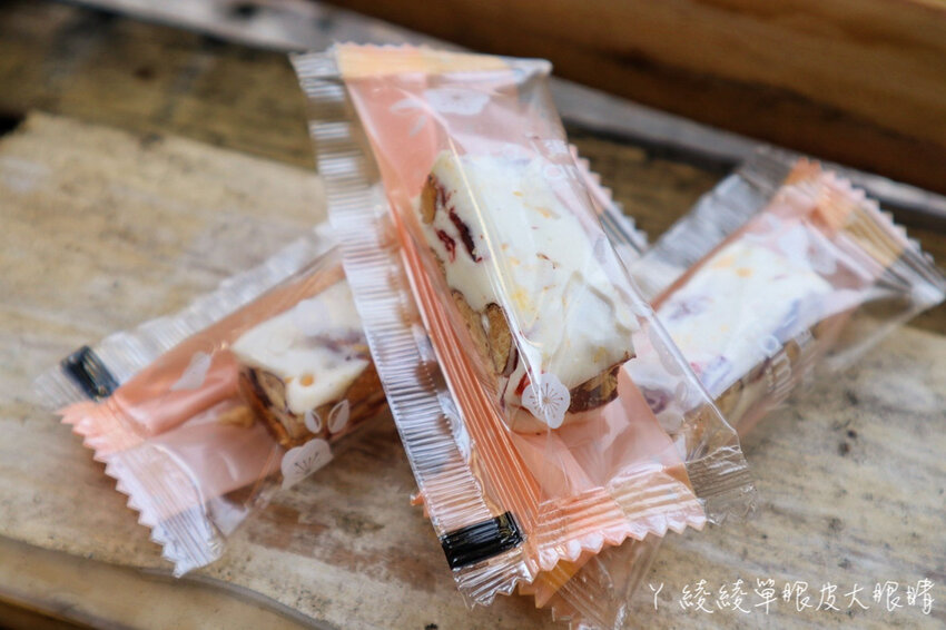 嚴選台灣雲林花生、天然奶油製作出來的原味牛軋糖,採用古法製作,以天然海藻糖降低甜度,微甜不膩的口感,相當香濃!而蔓越莓牛軋糖是精選蔓越莓果乾、加州杏仁果、天然奶油製作出來的,濃醇的奶香搭配酸甜滋味的蔓越莓果乾,越吃越過癮!