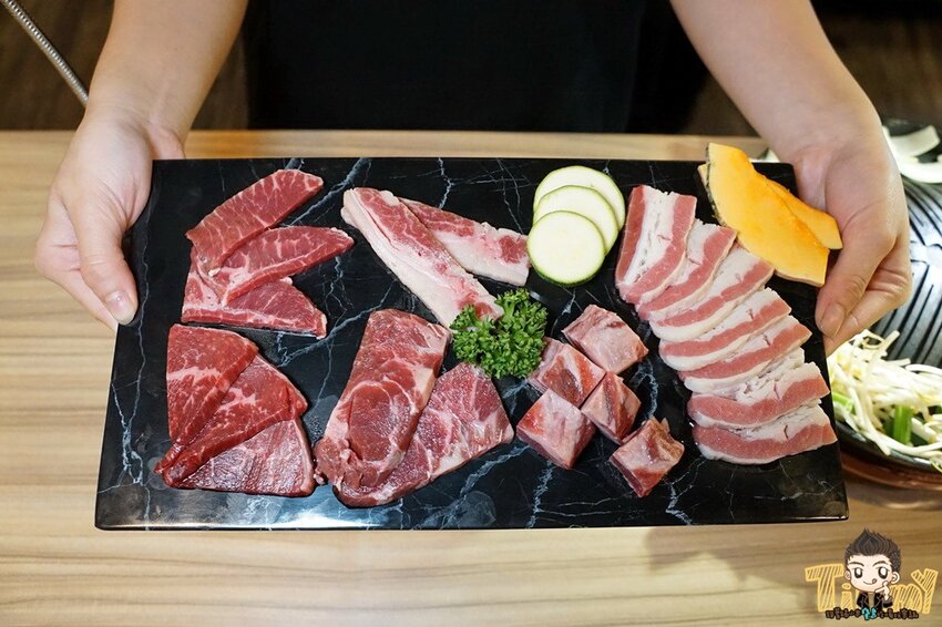 這次有吃到肉品是牛五花、雪花牛、骰子牛、板腱牛、翼板肉及肩胛肉,這個一人份吃應該嘟嘟好,兩人吃可以點兩個套餐或是一個套餐再加一些單點,應該1000元兩人可以吃蠻飽了