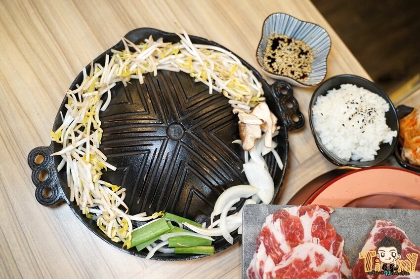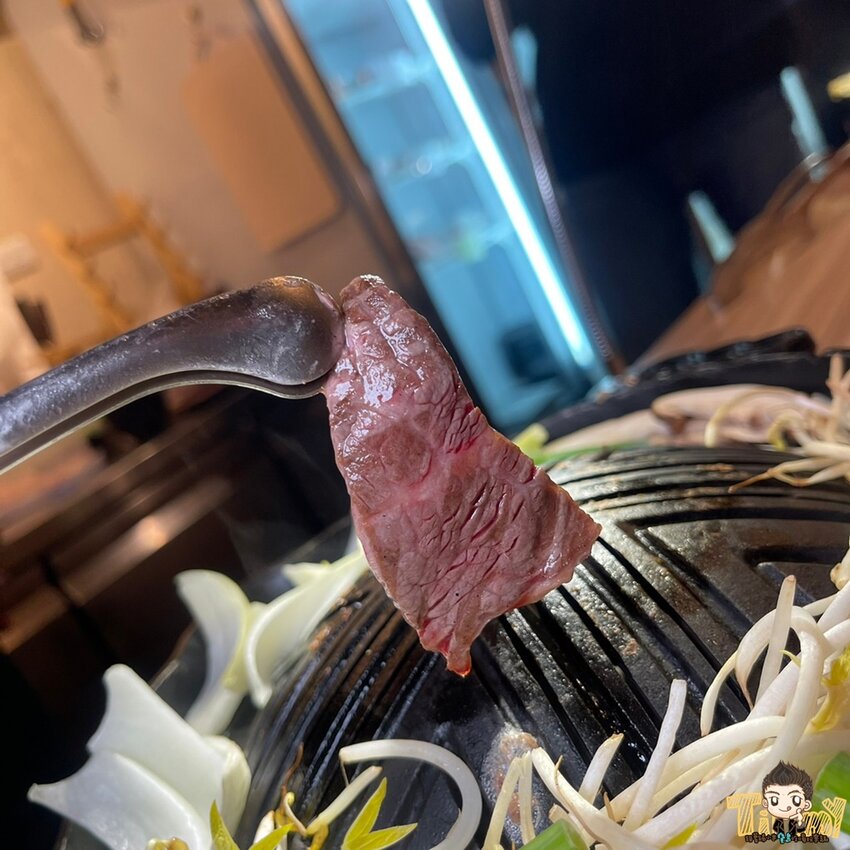 而且這可是老闆一片一片用心手切的肉盤,最後用日本北海道家喻戶曉成吉思汗烤盤,可以能有效的鎖住大部份肉汁外,流出的肉汁再被蔬菜吸收後油香好吃。