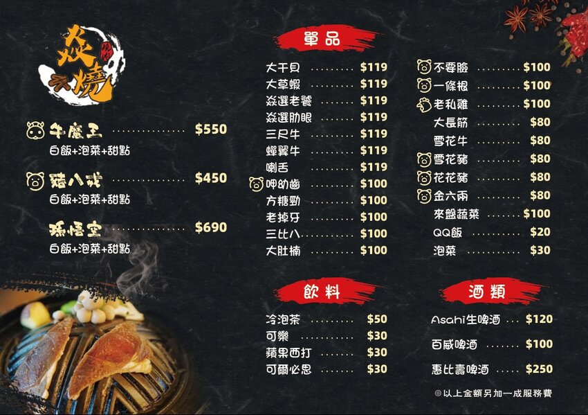 此外單點肉盤最便宜是80元起,其他都是100元上下,口袋不深來到這裡也不用擔心吃不飽XD