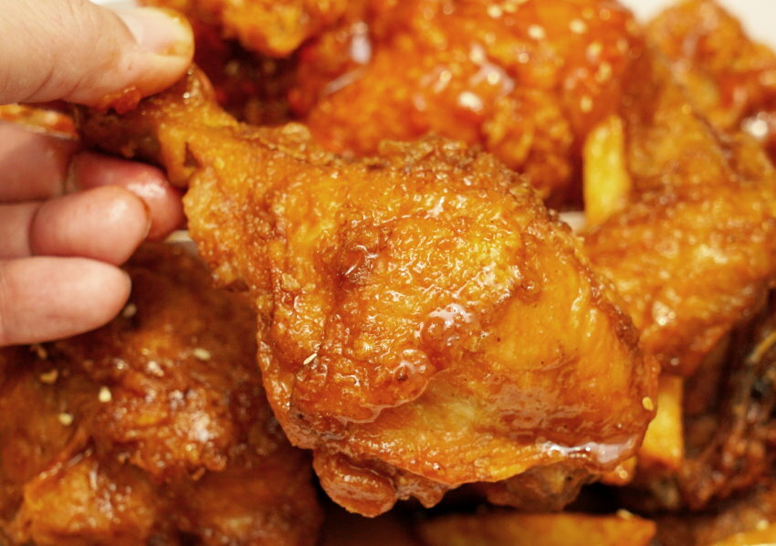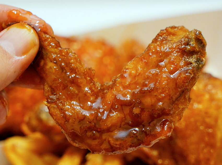 ▼雞翅刷上香濃醬料,整個甜滋滋的好美味!