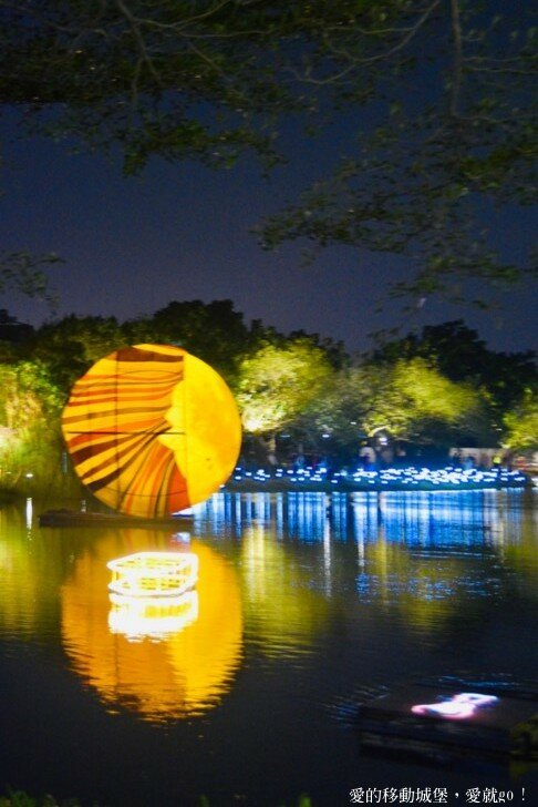 而水面浮現許多小白球,白天看似球,晚上應該就是燈吧,期待一顆顆在水面上發亮的燈火