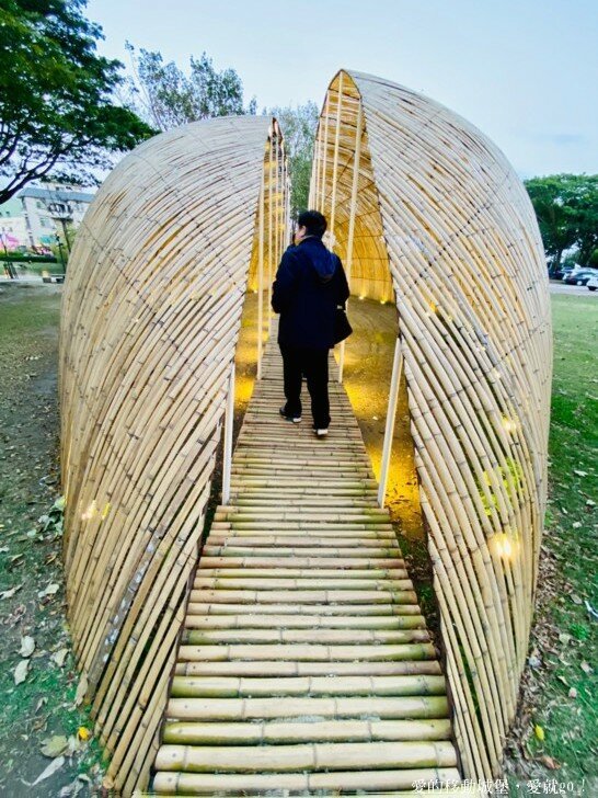種子造型的竹籠,走在裡面有立體的視覺效果