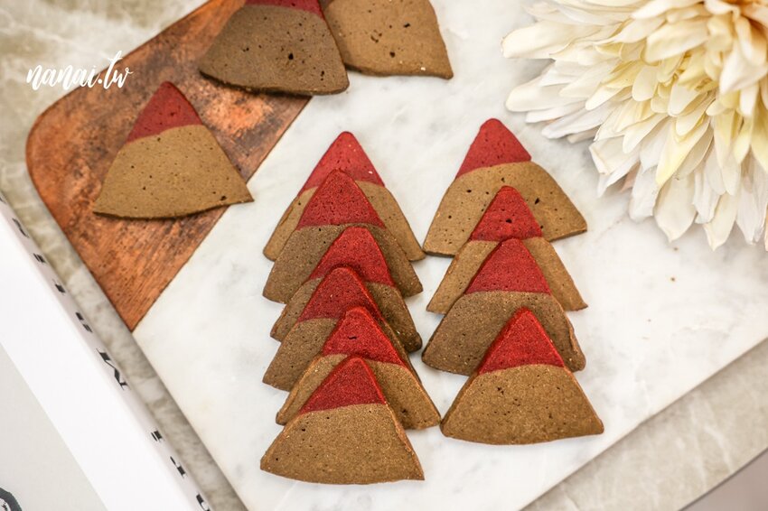 阿里山造型小西餅激發少女心,超萌外觀大口咬下滿滿幸福感~由於老闆非常喜歡台灣茶,又想將台灣茶葉發揚光大,因此他們家手工餅乾都是自家手工烘烤,就如這款結合台灣阿里山意象,並將阿里山茶葉融入手工餅乾製作,入口時可以享受茶韻在嘴裡跳躍,當你吞口水時仿佛喝一杯阿里山錯覺,甜香中帶有茶香味,不僅如此山尖地方也是用紅玉所製成,香脆卻不硬口口感令人欲罷不能。