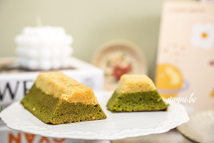 檸檬抹茶磅蛋糕一條重量約260g,超可愛的經典山形造型,宛如置身阿里山錯覺,磅蛋糕上層為檸檬口味,下層抹茶口味,切一塊入口滿滿檸檬酸香,蘊含著抹茶又稍帶甘苦味,扎實口感卻又帶微微的濕潤,光是一條磅蛋糕百吃不膩。