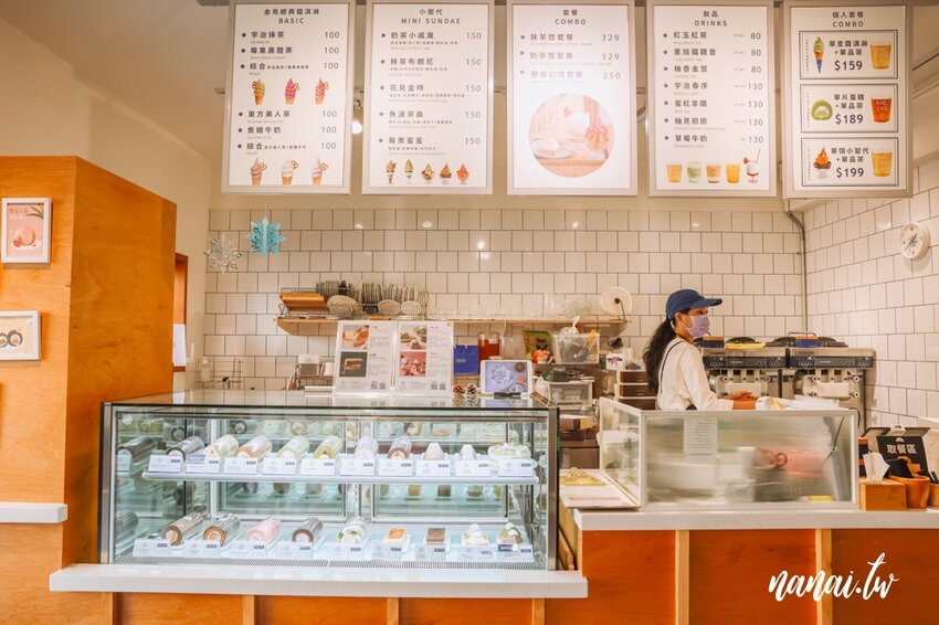 咱們掃完實聯制後,來到櫃檯區取貨,眺望著冰櫃各式各樣甜點,我的嘴角不停上揚,哇~多種口味生乳雪糕捲、第五種乳酪、山形塔,每個看起來都好好吃!