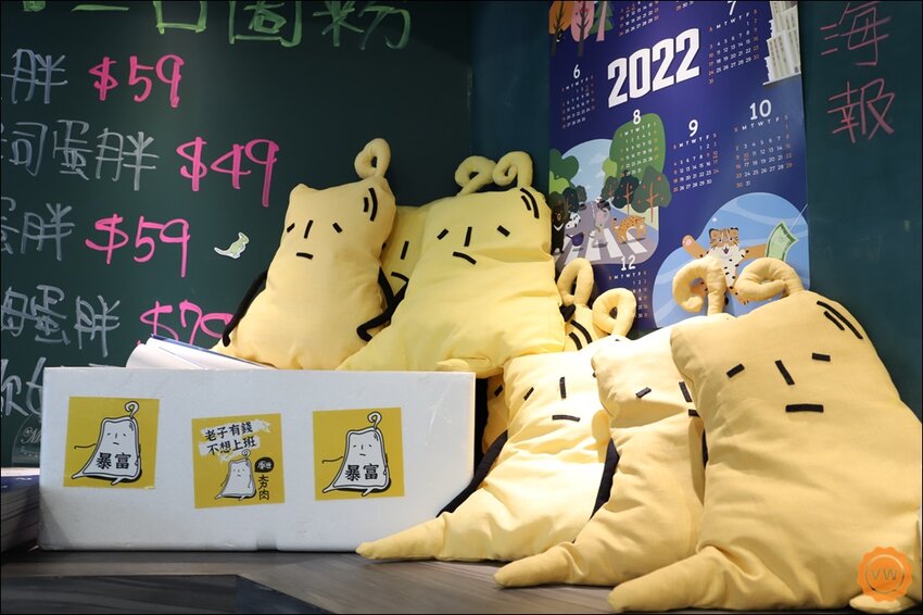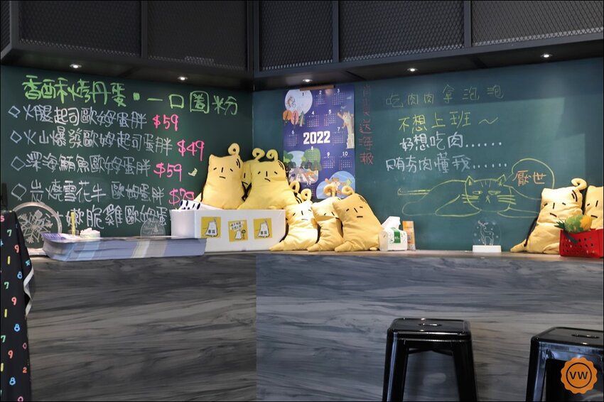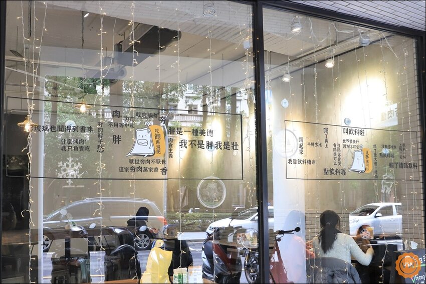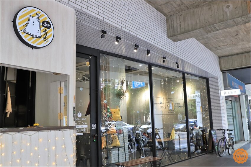 店面是選用亮眼的黃白色系,而且店家的靈魂人物—夯肉,也是超可愛的對吧?