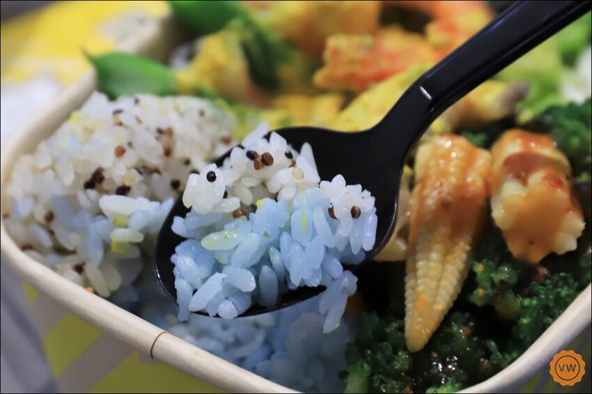 如果會有沒吃飯就覺得沒吃飽的朋友,當然也可以選擇這一道。採用雙色米飯及藜麥煮後,再捏成三角飯糰的外觀,不僅讓你有飽足感,也可以吃的更健康!