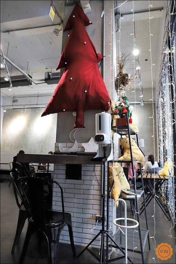 天花板是採用挑高的方式,所以一進到店內的感覺很舒適而且沒有壓迫感之外,店內還可以看的到去年因應聖誕節的各種裝飾。