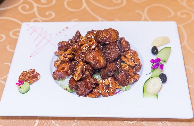 據說這裡的咖啡排骨很是有名,但友人聲稱更愛這道蜜汁核桃排骨,帶著油焦香的蜜汁入口略為綿稠很是夠味,小子排微帶筋的啃、咬吮指度很是討喜,像是配角的核桃也是好吃。