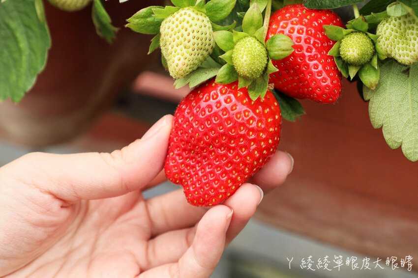 草莓顏色轉紅之後,大小就是固定的了,不會再變大顆了~老闆娘說想要品嘗香甜草莓,記得要採整顆紅色的草莓風味最好,如果還沒紅透就先不要摘嘿!至於大小就不拘哦!