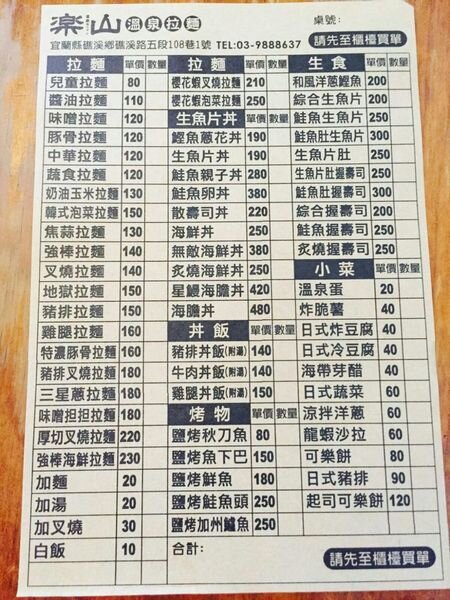 樂山溫泉拉麵價格算平價,拉麵價位大約在$80~$250元,而且吃完非常有飽足感~