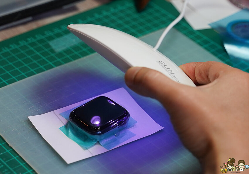 像是做自美甲一樣,會在照燈,讓液態保護膜硬化