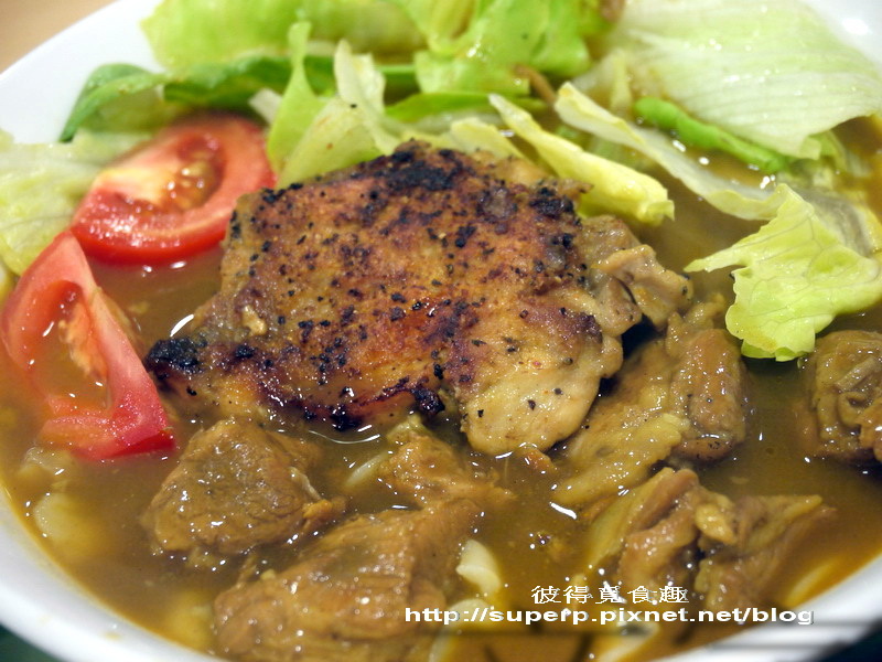 豬肉咖哩嚕哆$85+雞腿排$30(我喜歡吃澎湃些,所以加料了。這咖哩湯頭十分的鮮美,和牛腩咖哩的味道又不太一樣,我還是很喜歡。寬麵的Q度還算OK,也就是這種寬麵才適合比較濃的咖哩湯頭。豬肉口感不錯,也很入味,份量給的不小氣。雞腿排有煎過,也很嫩,只是小塊了些。反正這樣綜合起來$115,我覺得很划算,推!)