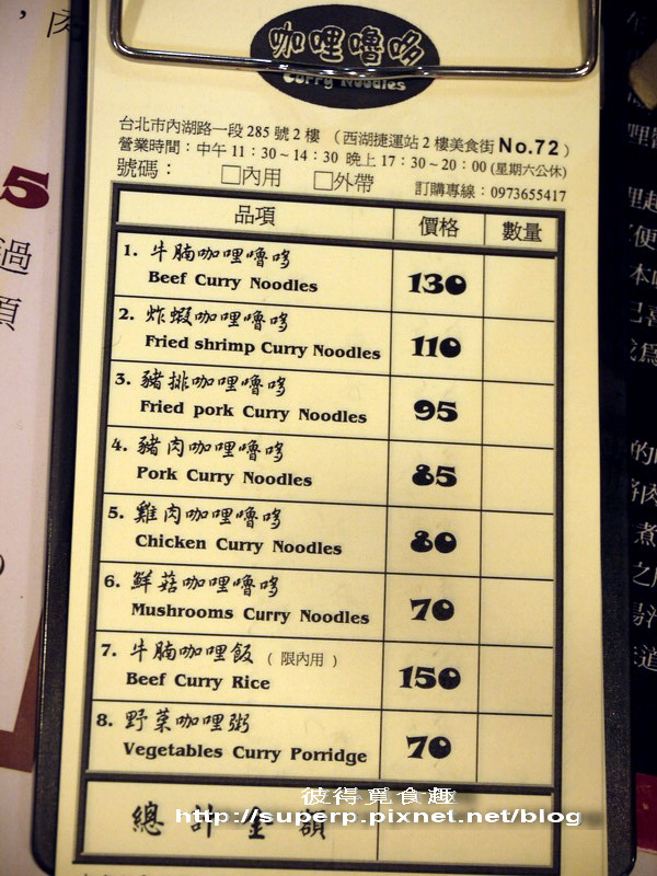 選擇性也不多。都是咖哩系列的,以湯麵為主,而嚕哆應該就是Noodle的諧音而已。