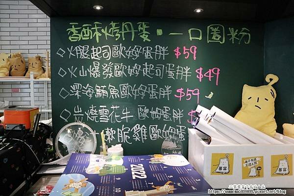黑板上寫有「香酥烤丹麥」系列,銅板價美食!