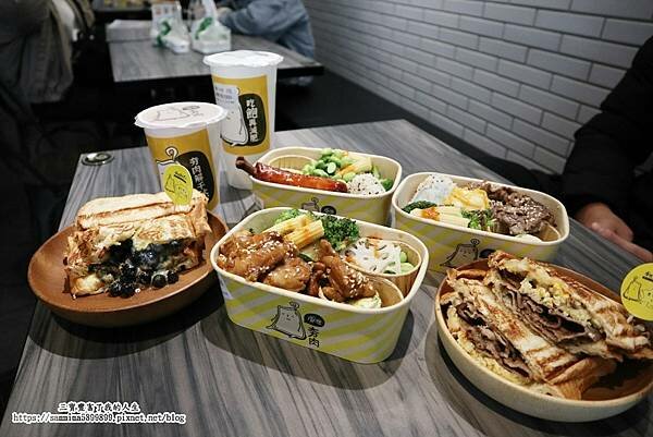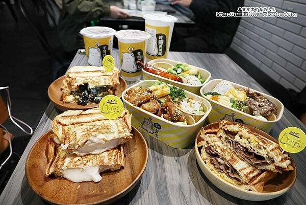 也推薦了桌上這些美味,有烤丹麥熱壓吐司、烤肉飯、低GI餐盒...
