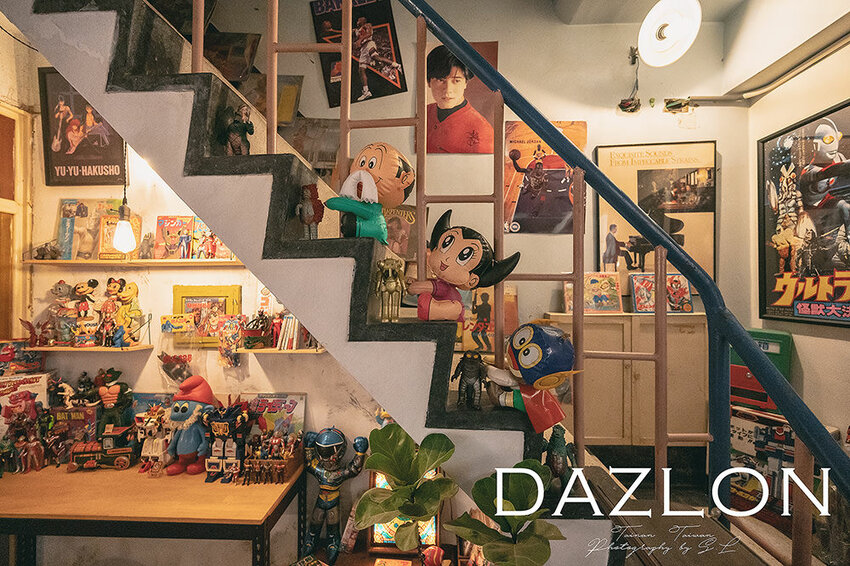 位在台南中西區一條住宅的小街裏頭隱藏了一間充滿著 7、8 年級生屬於的回憶,相信各位有機會走進這間「大次郎號 DAZLON」看見滿坑滿谷童年時的玩具、漫畫、電動以及有著年紀的舊物,會覺得自己停留在那段時間裡。可能當下會感嘆時間怎麼流逝這麼快,但這就是一個回憶,一個讓自己回到童年時的感受並回想起那時的純真與純樸的時光。