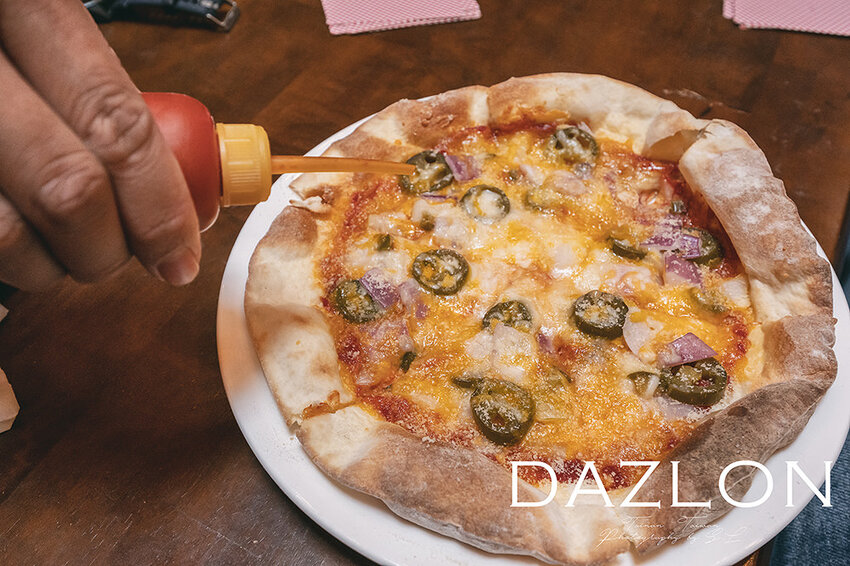 靠近「大次郎號 DAZLON」空間後的區域就是老闆製作披薩的小天堂,看著他從披薩的餅皮開始做起,一片片的披薩都是由他一人花了非常多的心思與汗水製作出來的,所以各位的餐點會一道一道慢慢的提供給各位。
