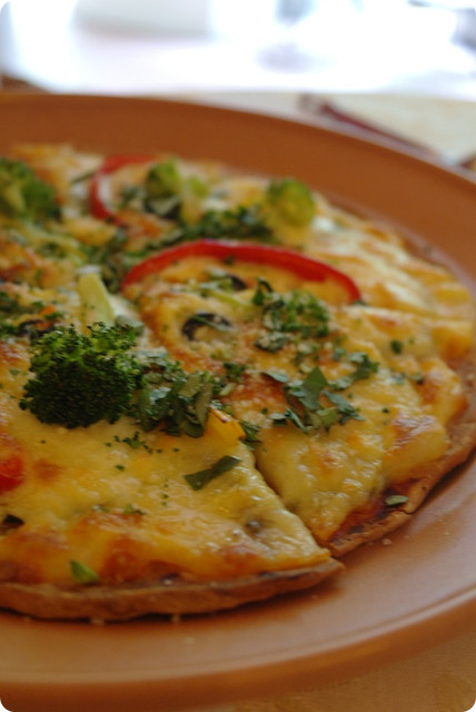 香烤菌菇鮮蔬薄皮披薩,還帶有果香,很美味!
