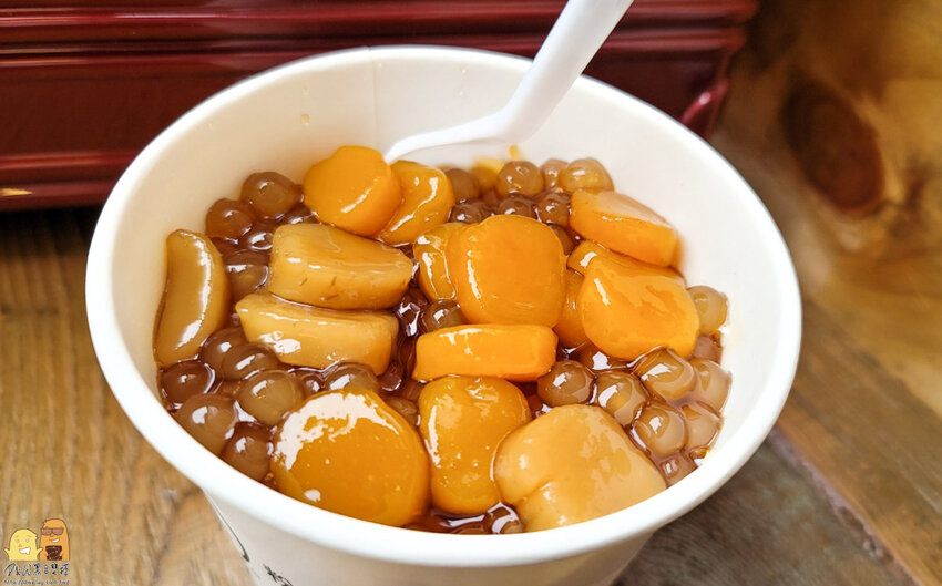 這個芋圓跟地瓜圓吃起來味道非常的濃郁,一口咬下都能吃到原食材的香氣