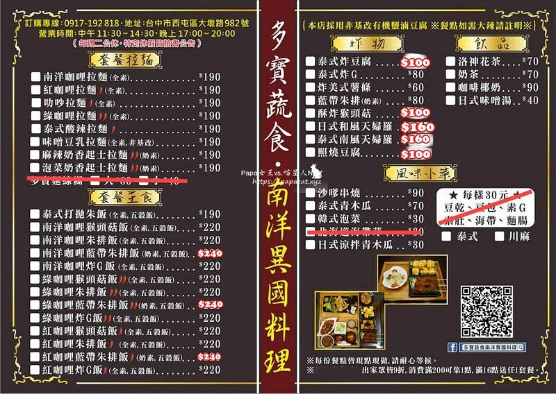 Duobao Vegetable Nanyang Cuisine◢ Address: No. 982, Dadun Road, Xitun District, Taichung City◢Tel: 0917192818◢Business hours: 11:30~14:30 ; 17:30~20:00 (Closed on Tuesdays)◢Internal use as low as $130/personNanyang style ramen, Nanyang curry rice, pasta, fried food, hand-made snacksMade to order, please wait patiently or switch to another restaurant if you need time!
