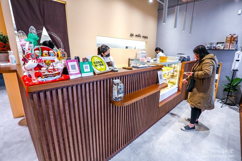 平日下午遇到大雨還是有許多客人來外帶蛋糕,生意真的很好!走進店內就看到整排配色繽紛的千層蛋糕,畫面療癒可口。