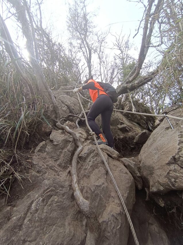 3.一定要有固定運動習慣再來,爬加里山並不輕鬆甚至蠻累的,最後550公尺處是一路向上的攀繩岩壁