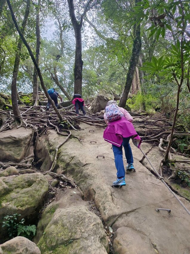 沿途也有階梯式的爬升~但這樣的路段較少!大多都是板根路~