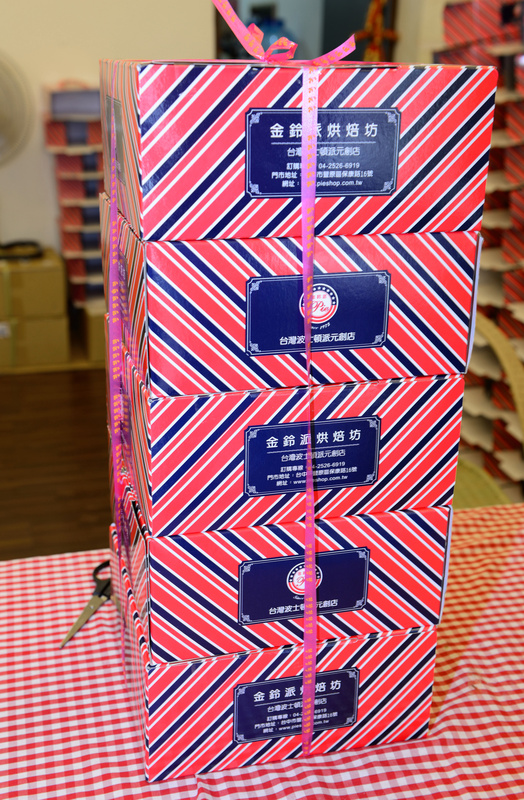我與ㄉㄨㄞ妹為了要品嘗剛出爐的波士頓派特地前往保康街的店面,金鈴波士頓派優惠一盒250元,外包裝紅藍白代表美國國旗的色系緬懷思源的傳承,打開外殼從裡面拉出底座,澎鬆的波士頓派好大一顆,上頭灑上雪花般的糖粉實在太邪惡了.