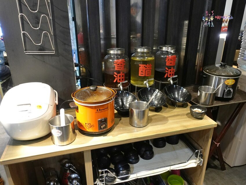 另一邊則有白飯、滷肉、麻辣鴨血和醬料,通通都是自取吃到飽。