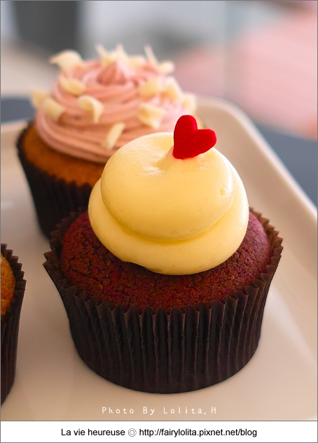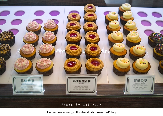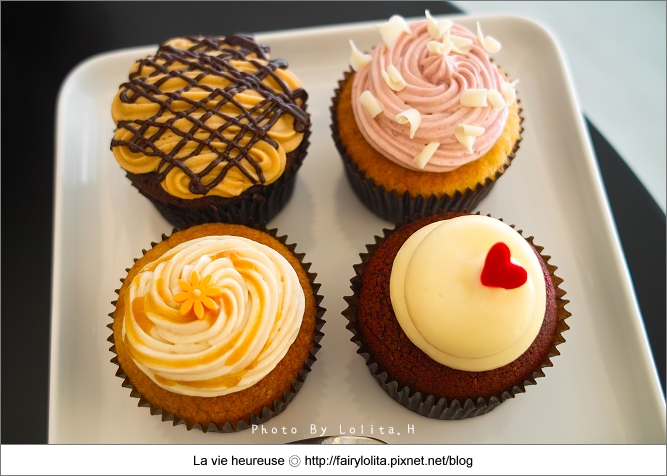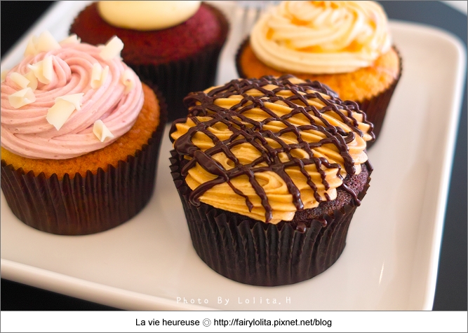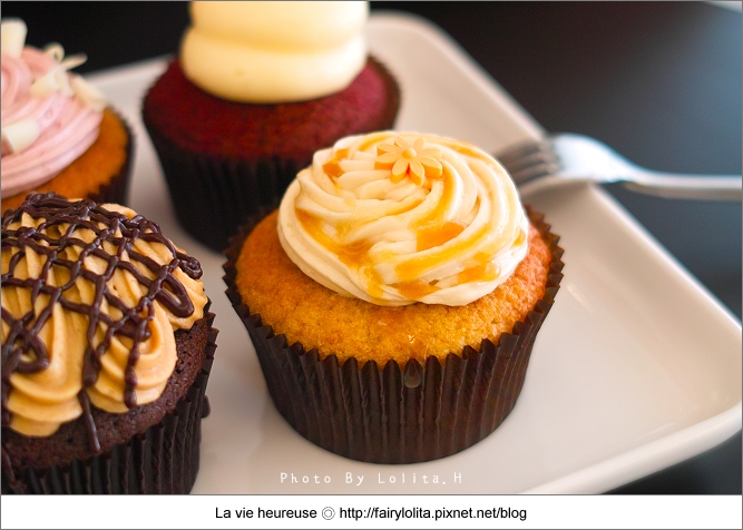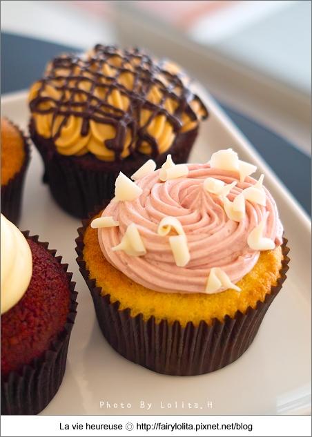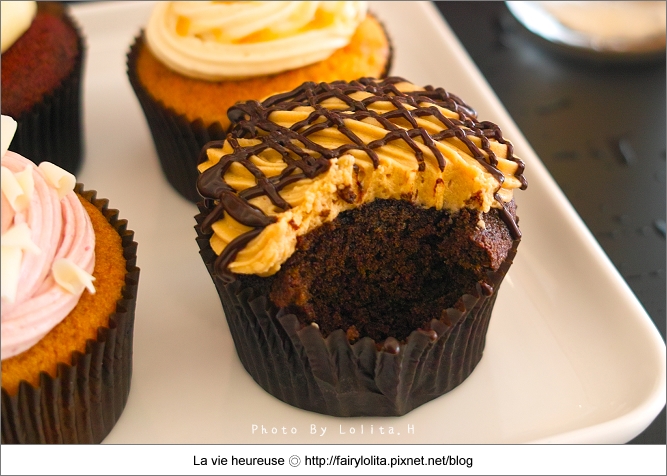 跟其它家杯子蛋糕相比,他們家的甜度還算是正常,蛋糕底主要以香草及巧克力為主,大部份都是上頭的奶油霜在做變化,每款特色鮮明是它很大的優點,且口感滑順爽口又不甜膩,唯獨就是蛋糕體比較乾一些,我想如果可以更濕潤,想必吃來會更叫人滿意呦!