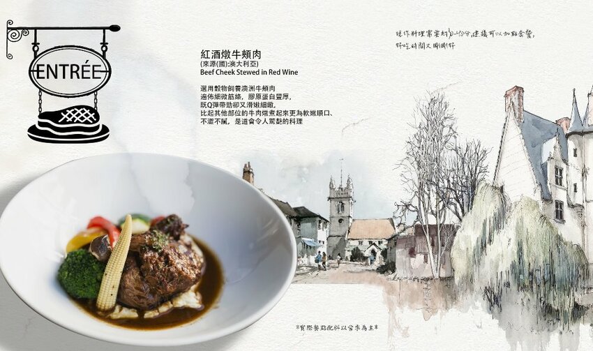 採用新鮮南瓜製作,先將南瓜烤過後,加入百里香及洋蔥打成新鮮南瓜泥,搭配自製白醬、蔬菜高湯下去熬煮而成的香濃南瓜醬,上頭淋上Ricotta醬,裡頭用了鮮奶油及檸檬角下去調和,搭配著香濃南瓜醬,口感更加濕潤又解膩