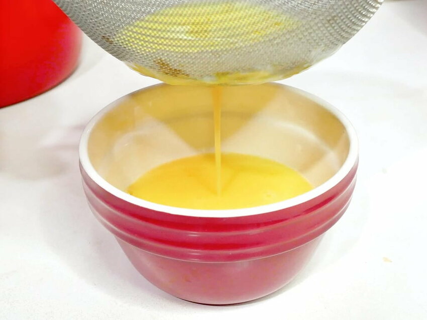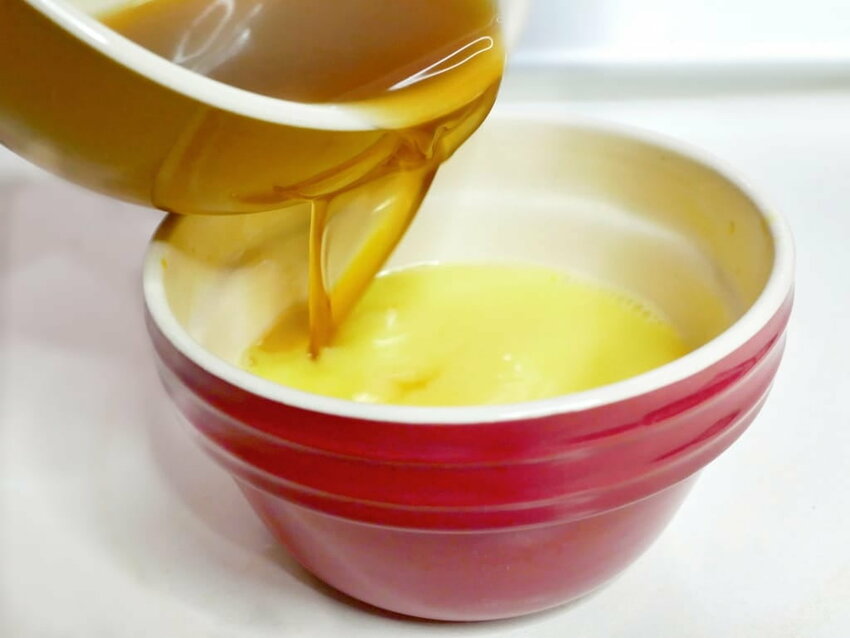 打入一顆雞蛋.加一些過濾水.拌勻後過篩
