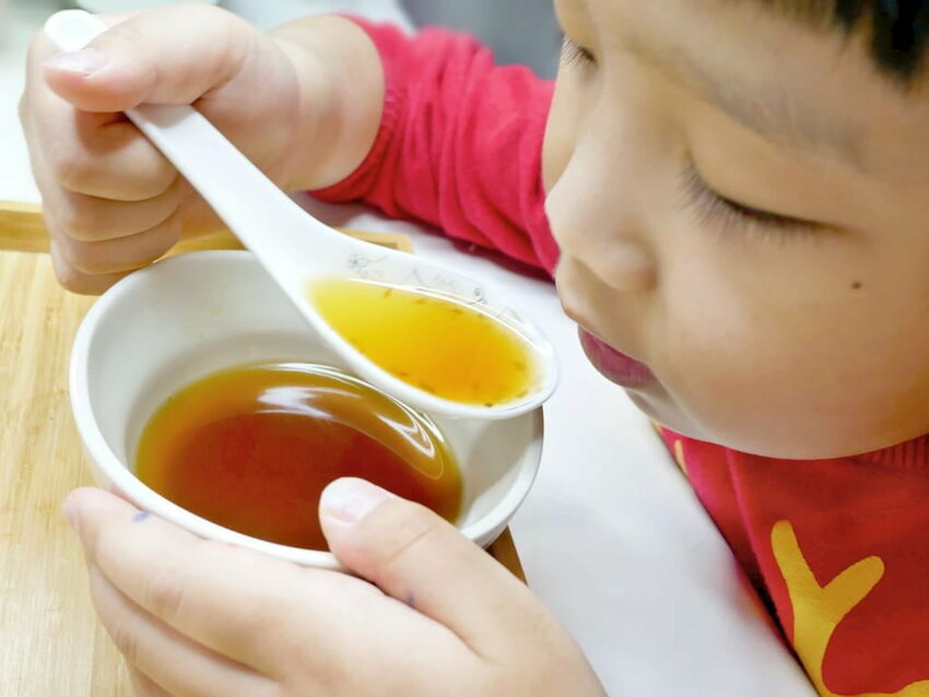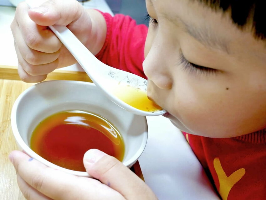 純淨琥珀色澤的滴雞精帶點淡淡的香氣.喝起清爽不膩口.是一款全家大小都可以補充的天然營養食品