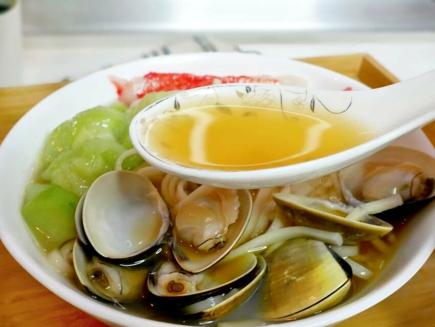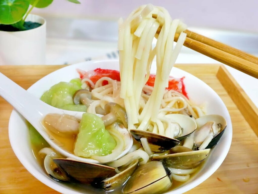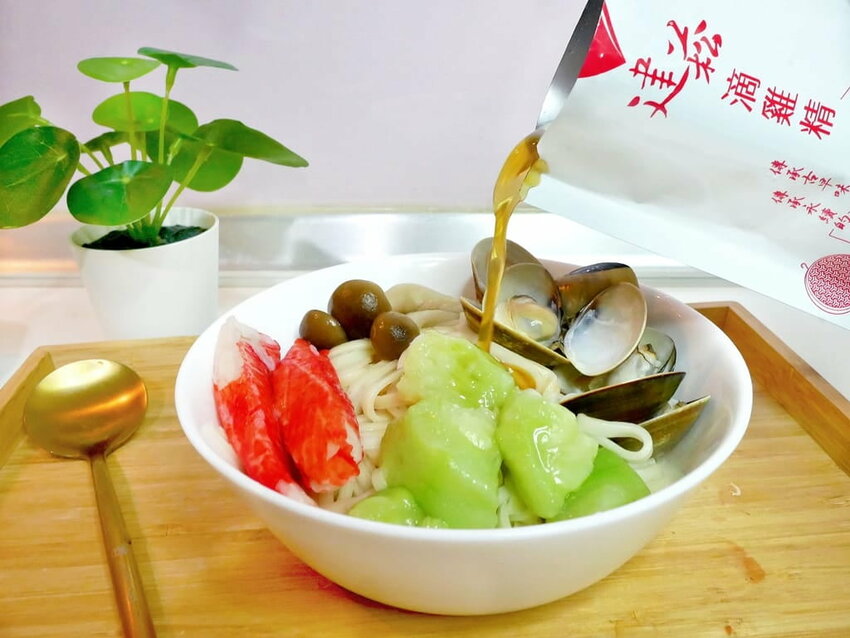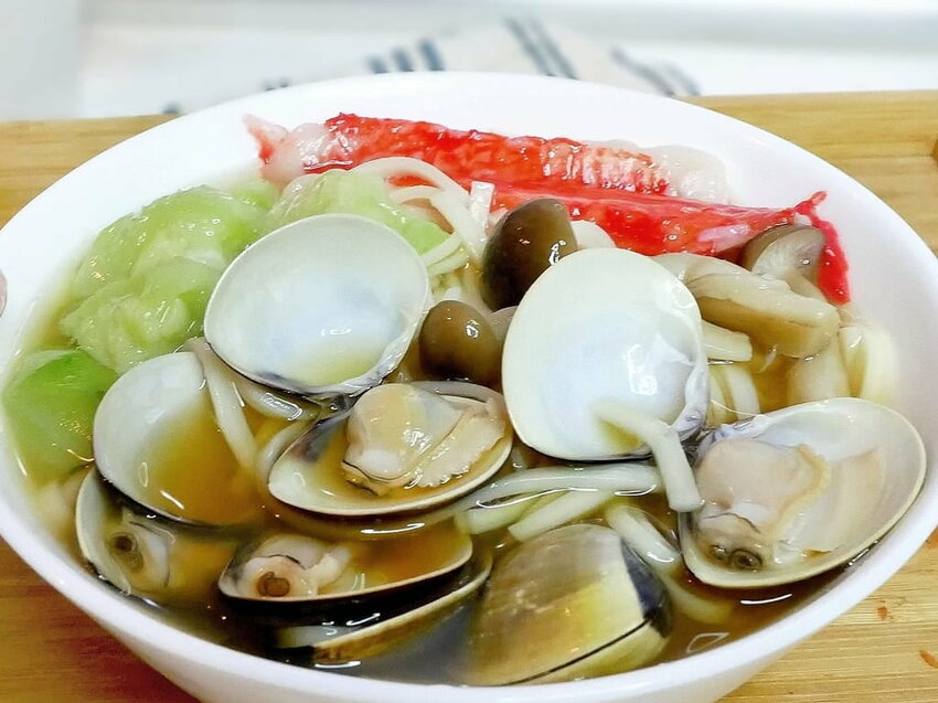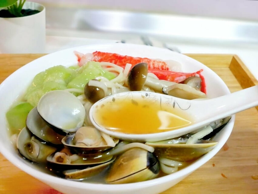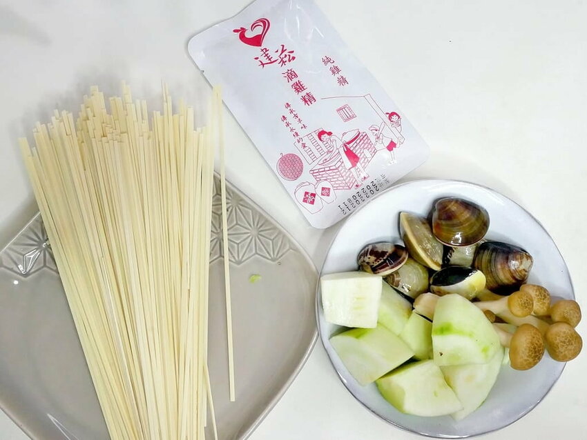 建菘滴雞精.絲瓜.蛤蜊.麵條.鴻禧菇