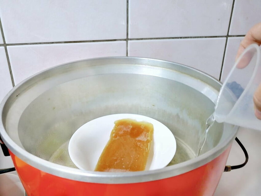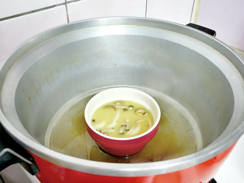 電鍋加熱:將冷凍雞精取出後.倒入碗內. 放入3/1杯水.按下開關即可