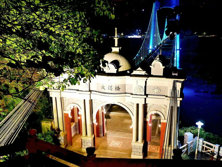 大溪觀光吊橋.呈現復古吊橋型式. 搭配橋面紅磚、拱門、石雕.加上LED燈照射下. 更加美麗!一整個典雅又浪漫~