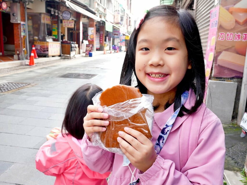 他們都是第一次嚐到古早味黑糖糕.感覺好新鮮.但由於疫情關係. 不方便邊走邊吃