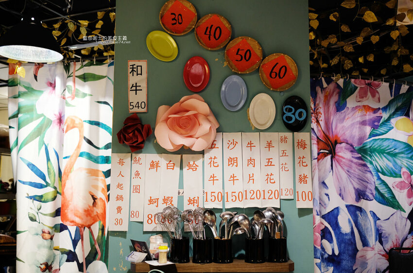在IG上搜尋火鍋,看到網友的食藝相片滿吸引人的,有點復古的外觀和裝潢,是好久沒看到的石頭火鍋,食材計算還是看盤子的顏色,