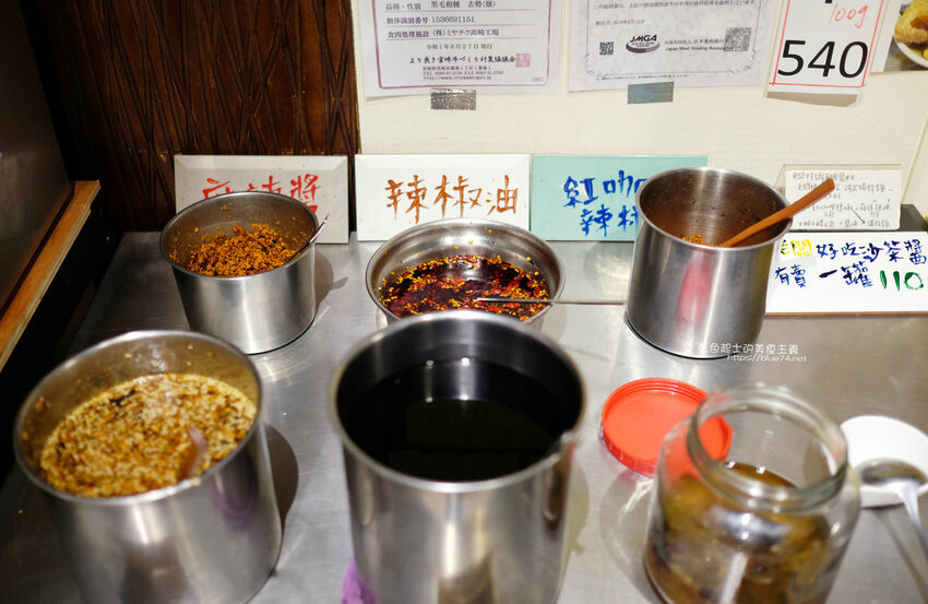 醬料種類好幾樣,光是辣椒就有麻辣醬、辣椒油和紅咖哩辣椒。