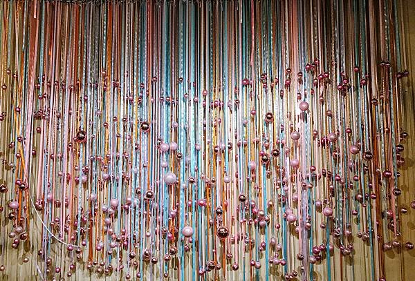 入口處的粉紅彩帶球牆是吸睛焦點,不同於其他網美牆的風格!