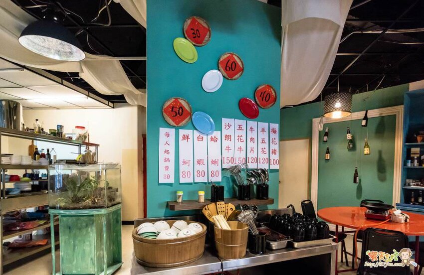 食藝石頭火鍋餐點有個人鍋、大鍋、小鍋,大鍋及小鍋的起鍋費是以人頭計價$30/人,食材的價格另計,採冰箱的食材自助式取用,依盤子的顏色計價,肉類及海鮮可以跟老闆另外單點。